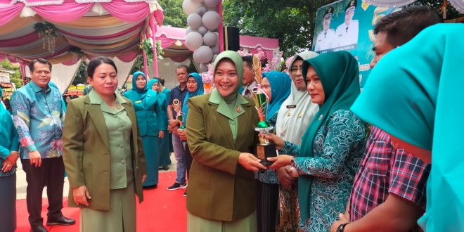 Dalam acara peringatan hari gerak PKK ke 50 tahun 2022 tersebut, Ketua Persit KCK cabang XXXVI Dim 0209/LB Ny Indah Faizal Rangkuti berkesempatan menyerahkan piala kepada salah satu pemenang lomba PKK.