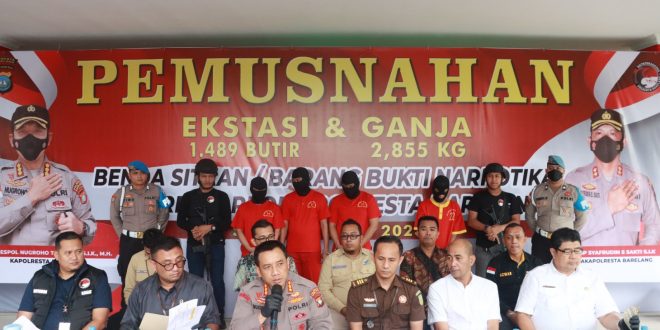 LiputanWarta.Com- Satuan Reserse Narkoba (Sattresnarkoba) Polresta Barelang musnahkan barang bukti narkotika jenis ganja dan pil ekstasi.