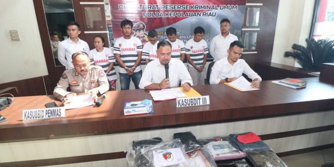 Kasubdit 3 Jatanras Ditreskrimum Polda Kepri AKBP Robby Topan Manusiwa, menjelaskan berhasil meringkus 5 terduga pelaku tindak pidana Pencurian dengan Pemberatan (Curat) dengan modus operandi spesialis pecah kaca mobil yaitu INISIAL A.S ALIAS R dan S ALIAS H sebagai Pelaku Curat dan INISIAL A.W.H, E.S serta F.A sebagai penadah uang hasil curian.