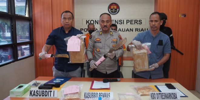 Komitmen Polda Kepri dan Jajaran untuk memberantas peredaran gelap dan penyalahgunaan narkotika dan obat atau bahan berbahaya (narkoba) di wilayah Kepulauan Riau dibuktikan dengan berhasilnya menggagalkan aksi penyelundupan narkotika jenis kokain dengan berat bruto 3205,5 (tiga ribu dua ratus lima koma lima) gram dalam 3 (tiga) bungkus plastik bening di Wilayah Kabupaten Kepulauan Anambas. Dalam penangkapan tersebut, diamankan dua orang tersangka berinisial A alias I, dan inisial A alias T. Hal tersebut disampaikan oleh Kasubbid penmas AKBP Mukharom. Selasa (6/6/2023).